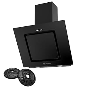• CIARRA CBC6B506 Campana Extractora Cocina Cristal 60 cm 370 m³/h 70W 3 Velocidades de Extracción -Evacuación al Exterior y Recirculación por Filtro de Carbón CBCF004 -Negro