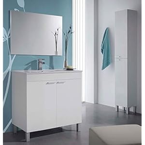 • Miroytengo Pack Muebles Mueble baño Espejo Columna Auxiliar y lavamanos PMMA Color Blanco Brillo