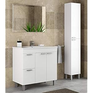 • Pack Mobiliario baño Mueble con lavamanos cerámico y Columna Color Blanco