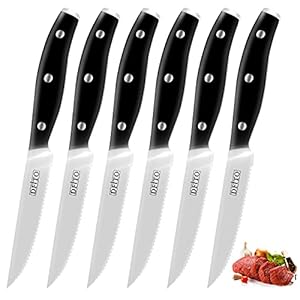 • Dfito Juego de 6 Cuchillos de Carne, Cuchillo de Bistec, Antioxidante y Anticorrosión Juego de Cubiertos Dentados para Carne, Pizza, Pan, etc