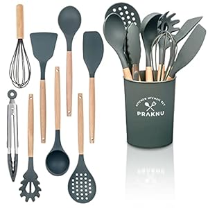 • Utensilios Cocina de Silicona,KagoLing 12 Piezas Juego de Utensilios de Cocina Resistentes al Calor y Antiadherentes con Mango de Madera para Utensilios