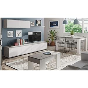 • Pack Muebles salón Plutón I Estilo Moderno (Mueble Modular + Mesa Centro + Mesa Comedor)