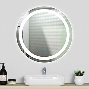• Espejo de baño Redond con Interruptor Táctil, Espejo de Baño LED Blanco Frío 6000k, Espejo Antivaho para Baño Diámetro 60 cm (Aro de Luz Interior)