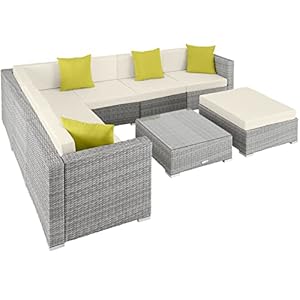• tectake 800892 Conjunto de Muebles de Jardín con Trenzado de Poliratán y Estructura de Aluminio, Muebles para el Patio, Mobiliario de Exterior con Cojines (defecto – Dos tonalidades de Gris)