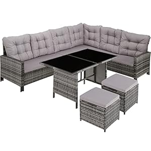 • tectake 800824 Conjunto de ratán, Sofá de Esquina para jardín, Mueble de Exterior para terraza con Mesa y Cojines (Gris – Gris Claro)