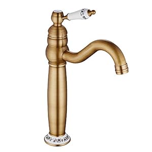 • Grifo de Lavabo de Alto de Bronce para Baño de Latón,Grifo de Baño Monomando, Vintage Cerámica Floral una Sola Manija del Grifo del Mezclador, Agua Fria y Caliente Disponible (Antiguo)