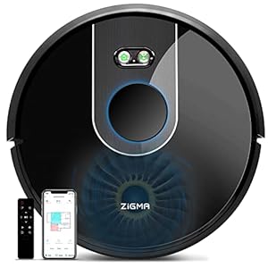 • Zigma Robot Aspirador 4000Pa Láser 2 en 1 Aspirador de Piso Limpieza de Habitaciones Compatible con Alexa y Siri con Control de Aplicaciones alfombras Pisos Pelo de Mascotas