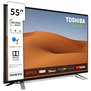 • Toshiba TV 55UA2B63DG 4K HDR Smart TV Android de 55″ Ultra HD (3840 x 2160), Chromecast y Google Assistant Integrados