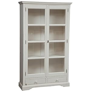 • Vitrina blanca de madera maciza 180x109x36 cm | Aparador o armario de cocina de madera | Mobiliario de hogar Shabby Chic | Armario de cocina vintage