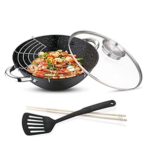 Durable y preparado para alimentos – el juego sartenes antiadherentes 100% abierto de plomo, PTFA, PFOA y cadmio. Al usar menos óleo, su diseño y materiales hacen la cocción más saludable. Para una vida útil más larga tiene revestimiento de efecto mármol en la tapa que evita rayones.