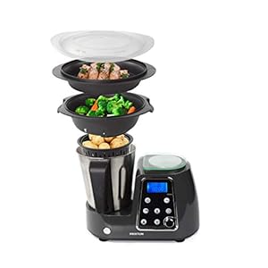 Calidad profesional: un solo dispositivo para preparar todo desde los entrantes al postre. Muy versátil gracias a su cuenco de puñal inoxidable y sus cuencos transparentes multifunción, puro para principiantes de cocina y para los expertos. Todo será consumido: sopas, salsas, platos cocidos a fuego lento, cocción al vapor, risottos, purés, pan, etc. Cocinar y recargar, cocinar a fuego lento o al vapor, amasar y recargar, batir claras y triturar
