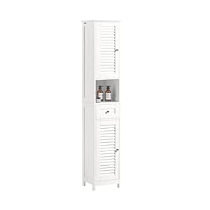 • SoBuy Armario para baño Alto Mueble Columna de baño estanterías de baño-2 Puertas y 1 cajón FRG236-W,ES (White)