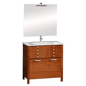 • ARTEMA MOBILIARIO Mueble de baño de Estilo Moderno con Lavabo y Espejo. Gama Vulcano (100x85x45 – Cerezo)